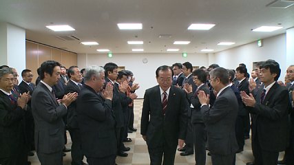 遠野市長選挙で再選を果たした本田敏秋市長の3期目の任期がきょう(23日)からスタートしました。市長選挙で無投票当選を果たした本田市長はきょう、3期目として初登庁し、市役所とぴあ庁舎の大会議室では午前9時から登庁式が行われました。主に課長級以上が集まった登庁式で本田市長は就任のあいさつと今後の市政運営について考えを述べました。3期目となる本田市政の幕開けに職員たちも気持ちを新たにしていました。
