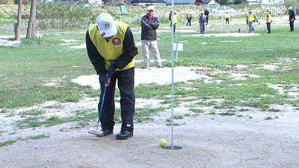 「岩手県マレットゴルフチャンピオン大会」が今週27日(日)に早瀬川緑地グラウンドで開かれ、県内のマレットゴルフの愛好家たちが腕を競い合いました。この大会は、参加者の健康維持と交流を深めようと県マレットゴルフ協会が毎年開催しています。大会には、遠野市をはじめ久慈市や山田町(やまだ まち)などからおよそ60人が参加しました。開会式で本田市長が「日ごろの練習の成果を存分に発揮してください」と選手たちを激励しました。マレットゴルフのマレットとは、「木(き)づち」という意味で、年齢にかかわらず楽しめることから生涯スポーツとして注目されています。競技は、男女別の団体戦で行われ、36ホールを回り、各チームの上位3人の平均スコアで争(あらそ)われました。選手たちは、ゴールホールを狙って慎重にボールを打ち上位進出を目指していました。なお、試合の結果、男子の部は遠野Aチームが、女子の部は山田町チームが優勝しました。また個人ベストグロスは遠野市の山口清孝さんと山田町の佐々木富美子さんでした。そして来年6月下旬には、遠野市でマレットゴルフの全国大会が開催される予定です。