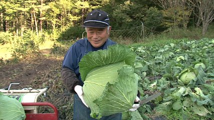 小友町の吉田喜市さんが育てたジャンボキャベツが、今風の丘の店頭に並び買い物客を驚かせています。こちらがそのジャンボキャベツです。通常のキャベツと比べるとその大きさは、一目瞭然です。横の長さを計ってみるとなんと40センチもあります。先月19日の出荷初日には、吉田さんの自宅裏にある畑で出荷に向けて収穫作業が行われていました。このジャンボキャベツは、多くの人に野菜に興味を持ってもらおうと吉田さんがおよそ5年前から栽培をはじめました。栽培し始めてからの3年間は、失敗続きだったといいます。通常のキャベツは、苗植えから収穫まで2か月ほどの期間を必要としますがジャンボキャベツは、その倍である4か月もの期間をかけて栽培します。そのため、キャベツの夏の暑さ対策と虫対策には、特に気をつけなければならなかったといいます。また、吉田さんは、畑から運び出す際ジャンボキャベツの葉どうしがこすれて、傷つかないように荷台にキャベツをのせたあと毛布でくるむ工夫もしています。収穫したあとは、自宅に戻りジャンボキャベツの葉が広がらないようにひとつひとつ丁寧にテープでまとめ、出荷準備が終わります。吉田さんによりますと気温が不安定な時期が多かったことしは、例年よりも小ぶりだということです。それでも40センチにもおよぶおおきなジャンボキャベツが、ことしも風の丘の店頭に並んでいます。