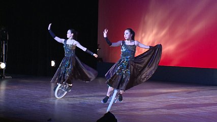 一輪車が大好きな市内の子どもたちが1年の練習の成果を披露する遠野一輪車クラブの演技発表会が今週1日に(日曜日)市民センター大ホールで開かれました。遠野一輪車クラブの発表会は、ことしで13回目を迎え、会場を市民センター大ホールに移しての開催は今回で2回目となります。発表会では初めに、集まった観客を前に遠野一輪車クラブ代表の赤坂千賀子さんがあいさつしました。この発表会は、市のわらすっこ基金を活用しながら日ごろお世話になっている人や家族などを招き開催されています。遠野一輪車クラブのメンバーは、5歳から高校生までの22人で、1年間の度重なる練習の成果をこの日の本番で披露しました。発表会ではメンバー以外にも県内の一輪車クラブや神奈川県の名門川崎渡田一輪車クラブからゲストを招いたり、メンバーの父親が一輪車に挑戦したりとバラエティーに富んだステージに会場からは惜しみない拍手が送られていました。