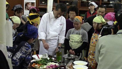 小友小学校で今週2日(月曜日)、フランス料理店のオーナーシェフ伊藤勝康さんを招いての「親子で作る冬のあったかフランス料理教室」が開催されました。伊藤さんは、農林水産省が顕彰する料理マスターズ23人に選ばれるなど、世界的に認められている日本人シェフの一人です。このフランス料理教室は、ことし6月に交流学習会のため小友小学校を訪れた伊藤シェフが、児童たちの一生懸命学ぶ姿に感動し、今度は一緒に料理を作る機会を持ちたいと実現しました。料理教室には、5・6年生の児童19人と保護者や地域の人たち合わせて34人が参加しました。この日、使われた食材は、伊藤さんが産直ともちゃんで厳選した野菜のほか、児童が栽培した米など地元食材が使われました。児童たちは、伊藤さんから「分量は気にせずダイナミックに調理して」などとアドバイスを受けながら前菜やメインディッシュ、デザートなど5品目のフランス料理に挑戦しました。料理が出来上がると児童たちは、フォークやナイフを使い、フランス料理のマナーを学びながら味わっていました。終わりに、伊藤シェフが児童たちに「遠野や岩手には、素晴らしい食材がたくさんあるので自分なりの料理を楽しみながら頑張ってほしい」と話していました。このフランス料理教室を通じて、児童たちの中には料理人を目指したいという児童もいたそうで、料理を作る楽しさのほかにも夢を描くきっかけづくりにもつながったようです。