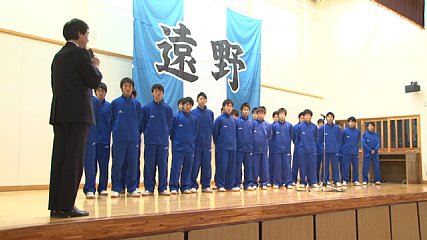 そのサッカー部に対する壮行式がきょう(18日・水曜日)、遠野高校で行われました。壮行式は、遠野高校の体育館に全校生徒が集まって行われました。初めに、浅沼哲平生徒会長が選手たちを激励しました。続いて、桐田千秋校長が「今までやってきたフェアプレー、さわやかな全力プレーで応援する人たちを魅了してほしい」と全国大会での活躍を期待していました。桐田校長をはじめ多くの人たちから元気づけられたサッカー部を代表して本間達耶キャプテンがあいさつしました。サッカー部は、今週21日に遠野を出発し、東京などで強化調整合宿を行って今月30日から始まる全国大会を迎えます。