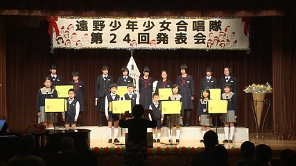 市内の小中学生たちが集まる遠野少年少女合唱隊の発表会が15日日曜日に開かれ、子どもたちの歌声が会場いっぱいに響き渡りました。少年少女合唱隊の発表会は、1年間の活動の成果を発表しようと毎年開かれていて、ことしで24回目になります。この日の発表会では、少年少女合唱隊が得意とする遠野のわらべうたはもちろんのこと童謡や世界各地の民謡などさまざまなジャンルの曲を全部で16曲披露しました。また、少年少女合唱隊のステージの合間には、市民混声合唱団ふきのとうが出演しインドネシア民謡や聖歌などを歌い上げて観客を魅了しました。現在、少年少女合唱隊には小学1年から中学3年生までの17人の隊員がレッスンに通っていて遠野物語ファンタジーや市民芸術祭などにも出演し楽しく活動を続けています。発表会の終わりには少年少女合唱隊の保護者やふきのとうのメンバーがステージに上がり互いのハーモニーを響かせていました。遠野少年少女合唱隊発表会の模様は、遠野テレビデジタル11チャンネルで2月1日土曜日と2日日曜日のいずれも午後3時と午後8時に放送します。