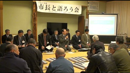 綾織町で、きのう(6日・木曜日)、市長と語ろう会が開かれました。市長と語ろう会は、今週4日(火曜日)から始まり、2回目のきのうは、綾織地区センターで開かれました。きのうは、およそ20人の町民が集まり、自主防災組織のあり方や千葉家の活用など22件の意見・提言が出ました。このうち、現在の自主防災組織の体制や災害時の避難場所のあり方に対し、市では「消防署員OBを地域活動専門員として地区センターに配置し、自主防災の普及活動を展開している」ことや「3月市議会定例会には『遠野市防災基本条例』を提案し、減災に向け取り組んでいく」と答えました。また、4月には市内全域の危険区域を網羅した「防災ハザードマップ」を全戸配布するとともに説明会を全地区で開催することが話されました。ごみの減量化などについては、今年度から「ごみダイエット作戦」に取り組む中で、資源の有効活用と、もえるごみの減量のため衣類回収ボックスを年度内に各地区センターに設置することが報告されました。このほか市では綾織町の千葉家の活用について建物の修復だけではなく当時の風俗、習慣の聞き取り調査を取り組むことも話されました。次回の市長と語ろう会は、来週10日・月曜日に青笹地区センターで予定されています。