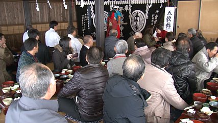 遠野市と友好都市を結んでいる熊本県菊池市と宮崎県西米良村の交流団が先週土曜日(22日)から遠野を訪れ市民と交流を深めました。この交流は、遠野市と菊池市、西米良村の3市村で地域ならではの文化や自然などに触れ視野を広めることと地域住民との交流を深めようと行われています。22日・土曜日から2泊3日の日程で遠野を訪れたのは、菊池市民交流団と区長協議会そして西米良村民交流団の合わせて31人です。一行は滞在2日目の23日(日)に、遠野ふるさと村を訪れ、ひっつみなどの郷土料理や上郷町の平倉神楽の舞を堪能しました。平倉神楽は、去年12月に菊池市と西米良村を訪問し、郷土芸能を通して交流を深めています。交流団一行は、ビデオカメラを片手に平倉神楽の激しい舞を堪能するとともにひさびさの再会を喜んでいました。なお、交流団一行は、今週(24日)月曜日まで遠野に滞在し遠野物語ファンタジーの鑑賞や被災地の視察などを行ったということです。