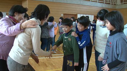 1年間お世話になった地域の人たちに感謝の気持ちを伝えようと上郷小学校で、おととい(4日火曜日)地域に感謝の会が開かれました。この日、上郷小学校に招かれたのは、田植え実習やしし踊りの練習などで児童たちに指導をしてきた地域の人たち合わせて8人です。初めに、全校児童の代表がメッセージカードとともに1年間お世話になった感謝の気持ちを伝えました。そして、児童たちと地域の人たちが一緒に輪になってお題のことばの時にだけ一斉に手をあげるゲームやじゃんけんをして負けたほうが勝った方の後ろにつながるじゃんけん列車ゲームが行われ、盛り上がりを見せていました。児童たちは、感謝の気持ちを込めながらお世話になった地域の人たちと一緒に、終始笑顔でゲームを楽しんでいました。また、会の最後には、地域の人たちが「このようなすばらしい会を開いてくれてありがとう」と児童たちに喜びを伝えていました。