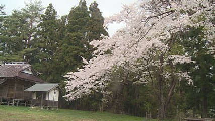 宮守町鱒沢にあります高舘部落八幡神社の桜をご紹介します。きょう撮影した桜は、高舘部落八幡神社の境内を囲むように植えられているエドヒガンザクラです。神社がある周辺には、およそ700年前遠野の領主の家臣が住んでいた屋敷がありました。その家臣が植えたと言い伝えられているのが上空から撮影したこちらのエドヒガンザクラです。推定樹齢が700年で、平成10年には、旧宮守村の天然記念物に指定され、遠野市との合併後は、市の天然記念物として指定されています。それでは、エドヒガンザクラの上空からの映像をお楽しみください。高舘部落八幡神社のエドヒガンザクラは、今、満開の花を咲かせ見ごろを迎えています。