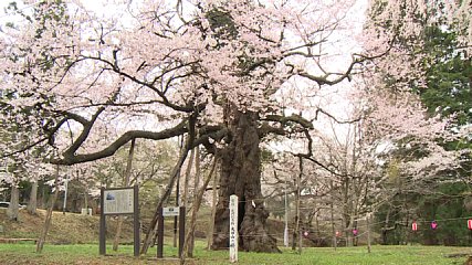 今週月曜からお伝えしている「きょうの桜」。きょう(5月1日・木曜日)は、遠野市の天然記念物に指定されている、遠野町日枝神社の大日山の桜です。こちらが、きょう撮影した日枝神社のエドヒガンザクラです。この桜は、今から329年前の1685年、境内に大日堂が建立された時に植えられたと伝えられています。高さ12メートル、幹回りは6.6メートルもある巨木で長年の風雪で幹が空洞化しているのも特徴の1つです。神社の人によりますとさくらは4日前から咲き始めたということで今が見ごろとなっています。日枝神社の大日山の桜の見ごろは、天候が良ければまだ1週間は続くということです。
