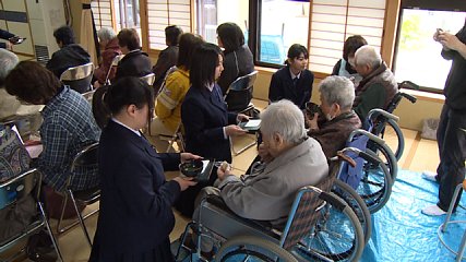 松崎町の総合福祉センターで先週17日(土曜日)、遠野高校の生徒が沿岸被災地から遠野に避難している人たちなどを招いてのミニ発表会を開き、音楽などを通して交流を深めました。この会は、震災後に遠野で生活している人や地域の人たちとの交流を目的に遠野高校が開催しました。この日は、邦楽部や音楽部、茶道部の生徒など合わせておよそ40人が、沿岸から遠野に避難し生活している人や地域の人たちを音楽などでおもてなしをしました。初めに、生徒会のメンバーが映像を交えて遠野高校を紹介しました。続いて、邦楽部の生徒たちが琴で「春よこい」や「ふるさと」など親しみやすい曲を演奏しました。また、合唱部の生徒たちは、自分たちよりも上の世代になじみのある「真赤な太陽」や「天城越え」などの歌を披露しました。訪れた人たちは、ゆったりと午後のひとときを楽しんでいました。遠野高校では、8月下旬に開かれる文化祭の出店での売り上げすべてを大槌高校に贈ることにしていて、これからも沿岸地域への支援活動を行っていくということです。
