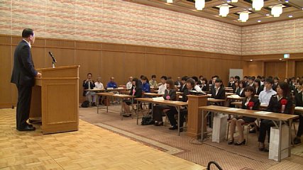 ことしの春、市内の企業に就職した新入社員を集めた「新しい勤労青少年のつどい」がきのう(16日)、あえりあ遠野で開かれました。このつどいは、新入社員の新たなスタートを祝い激励するとともに職業人としての心構えを学んでもらおうと毎年開かれています。この春、高校や専門学校などを卒業し市内に就職した若者は80人で、そのうち、きのうは、28の事業所から58人が参加しました。つどいでは主催者や来賓が、集まった新入社員へ激励の言葉をおくり、出席者一人一人が自己紹介をしたあとは新入社員を代表して宮守町内の企業で勤める照井彩花さんが誓いの言葉を述べました。このあと、優良勤労青少年表彰が行われ、25歳未満で同じ事業所に3年以上勤務して優秀と認められた岩手アパレルの小野寺穂菜美さんと多田絵利菜さんの2人に表彰状が贈られました。さらに市内の事業所に3年以上勤務した人たちに贈る遠野市若年者継続勤務奨励金の交付も行われました。この奨励金は、市内の事業所に就職した若者が職場や地元に定着するよう遠野市が設けた制度です。今年度は、平成23年度に入社した人が対象になりますが、その年に入社した77人のうち55人が奨励金を受け取る見込みです。きのうは、代表の2人が本田市長から目録を受け取り、これまでの喜びや苦労を話し先輩として新入社員にエールを贈りました。このほか、きのうは、「若者が住みたい!暮らしたい!働きたい!そして、結婚したいと思う魅力的な遠野になるために」とテーマを設けて市の子育てするなら遠野推進本部のメンバーも加わり互いにアイディアを出し合い同じ市内に勤める人同士の交流も深めていました。