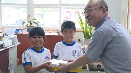 市内の児童生徒がはがきで交通安全を呼び掛ける「かっぱレター」の贈呈式がきのう(17日・火曜日)、とぴあ庁舎で行われました。「かっぱレター」は、市内の児童生徒が交通安全を呼び掛けるメッセージをはがきに書いて家族や大切な人に送り、地域ぐるみで交通事故防止に取り組むもので、ことしで6年目になります。「かっぱレター大作戦」と銘打ったこの取り組みにことしは市内43の事業所が協力しました。きのうの贈呈式には、「かっぱレター」に協力する事業所や交通安全協会など関係者が出席し、代表してキンダイチ自動車の金田一文隆さんから本田市長にかっぱレターが手渡されました。ことしのかっぱレターは、遠野高校美術部の生徒3人が共同でデザインをし、800枚が用意され、市内の小学校、中学校、高校のほか遠野まごころネットや仮設住宅などにも配られるということです。また、きのうは郵便局の関係者が遠野小学校にも訪れ、代表の児童にはがきを手渡して交通事故防止を呼び掛けていました。はがきは、交通安全対策協議会から市内の学校を通じて児童生徒たちに配られ、交通安全のメッセージと共に8月1日から10日までの「夏の交通事故防止県民運動」に合わせてポストに投かんされるということです。