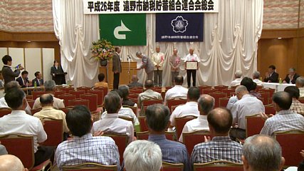 市税の納付に団体で取り組んでいる遠野市納税貯蓄組合連合会の総会が、きょう(2日・水曜日)、あえりあ遠野で開かれました。納税貯蓄組合連合会は、固定資産税などの市税を、期限内に納められるよう地区ごとに取り組むもので、市内126組合で組織されています。総会では初めに中村桂三会長が「組合数の減少に危機感があるので、今後も連合会への加入促進や後継者の育成を進めていきましょう」とあいさつしました。続いて、7年以上継続して納期内に税を納めている組合など3団体、5個人と、役員1人、1支部の表彰も行われました。この中で、附馬牛支部は、組合員全員が納期内にすべての税を納めたことから表彰されました。また、総会では、昨年度の事業報告や、収支決算、今年度の事業計画案などの議案について審議され、全会一致で承認されました。それによりますと、昨年度、市内の組合で期限内にすべての税金を納めたのは77組合で、前年度よりも9組合減り、収納率も、99.1パーセントで、0.2ポイント下回ったということです。このほか、総会では、任期満了にともなう役員の改選が行われ、新しい会長には、小友支部の菊池輝一さん、副会長には、新任で宮守支部の佐藤芳夫さん、再任で綾織支部の照井公一さんがそれぞれ就任することになりました。納税貯蓄組合連合会では、今年度も組合員が一致団結して、期限内の完納を目指して活動を展開するということです。