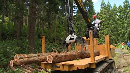 遠野地方森林組合がおととい(1日・火曜日)、宮守町鹿込地区で、この春導入した高性能林業機械を使って森林整備を行いました。遠野地方森林組合が新しく導入したのは、ハーベスタと、フォワーダの合わせて2台です。ハーベスタは木を切り倒し、枝を払いながらサイズに合わせて切断し、丸太にする機械です。また、フォワーダは、切断された丸太を、荷台に積みこんで運ぶ車両です。森林組合ではことし3月、県の「森林・林業再生基盤づくり交付金」を含む、遠野市の「高性能林業機械導入事業費補助金」2204万円を活用して機械を導入しました。この日は、森林組合に所属する3人が、地区の森林7.6ヘクタールで、スギの木の伐採などを行いました。機械の導入により、伐採から積み込みまでをすべて機械で行えるようになったことから、作業員の労力を軽減でき、さらに、安全面も確保できるようになったということです。森林組合では、これらの機械を活用しながら今後も遠野の森の整備に力を注いでいくということです。