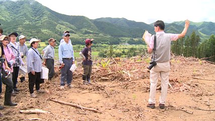 地域に古くから言い伝えられている戦国時代末期の阿曽沼氏の重臣鱒沢佐馬助の舘跡見学会が先週土曜日(6月28日・土曜日)地域の人たちを集めて開かれました。上鱒沢地区自治会が主催した舘跡見学会には、地域の人たちなど30人あまりが参加しました。鱒沢佐馬助の舘跡は、上鱒沢地内にある長泉寺の裏山の尾根にあり、山の持ち主が木を伐採をしたことで舘跡の形状が明らかになったものです。見学会では、遠野文化研究センター文化課の職員が、舘跡の規模や造りなどについて説明しました。さらに鱒沢氏と阿曽沼氏の歴史背景についても説明がありました。説明によりますと、遠野阿曽沼氏の一族であった鱒沢佐馬助広勝などが、鱒沢と小友村の半分を領地としていましたが、領地をさらに拡大し統治したいとの思いから、慶長5年、遠野横田城主の阿曽沼広長が出羽の国、現在の山形に出兵中に南部氏の後押しによって反乱をおこし広長を追放しました。しかし、遠野奪還のため攻めてきた広長の軍勢との戦いに広勝が討ち死にし、さらに南部氏の家臣だった広勝の子も陰謀の疑いをかけられ命を落とし、鱒沢家は滅んでしまったということです。舘跡は、家臣の建物跡を取り囲む規模の大きな2重の空堀のほか、迷路のような複雑な空堀も造られているなど阿曽沼氏と鱒沢氏の抗争や南部と伊達との境に位置していたこともあり、戦いに備えた緊張感のある舘跡となっています。この日の見学会で参加者たちが舘跡の形状が残る山を登ったほか、場所を上鱒沢地区集会所に移し遠野市文化財保護審議会委員の水原義人さんを招いての講話会も開かれました。上鱒沢地区自治会では「今後も鱒沢佐馬助に関する学習会を開催したい」と話しています。