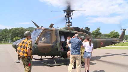 東日本大震災の時、実際に被災地への物資輸送などで活躍したヘリコプターの体験搭乗会が先週12日(土曜日)総合防災センターで開かれました。この体験搭乗会は、震災の時に使用された多用途のヘリコプターの機能を知ってもらおうと自衛隊岩手地方協力本部が開きました。体験搭乗会は、県内の場外着陸場で今回初めて開かれ、市内外から60人が参加しました。参加者が搭乗するヘリコプターは、UH1J(ユーエイチワンジェイ)という大型ヘリで、最大積載人数は12人です。参加者たちは、搭乗前に隊員から今回使用するヘリコプターが空中消火や遭難救助活動などに携わることなどの説明を受けました。また、震災の時の救援物資運搬などで活躍したということで自衛隊の任務や災害時に活躍する自衛隊機に理解を深めていました。そしてこのあと早速市民がヘリコプターに乗り込み、機内の仕組みや空中散歩を満喫しました。自衛隊岩手地方協力隊では、今後も市民に理解を深めてもらうためヘリコプター体験搭乗会を続けていくということです。