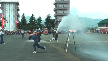 矢巾町(やはば ちょう)にある岩手県消防学校で今週日曜日(27日)に開かれた県の消防操法競技会に出場した遠野の消防団の映像が届きましたのでお伝えします。この競技会には、ポンプ車の部と小型ポンプの部にそれぞれ県内11の地区支部で選ばれた消防団が出場しました。遠野釜石地区支部からは、ポンプ車の部に遠野市消防団第9分団第2部、小型ポンプの部に遠野市消防団第5分団第2部がそれぞれ出場しました。結果は、ポンプ車の部が第4位、小型ポンプの部が第7位ということです。また、競技会を主催した岩手県消防協会からの推薦で遠野市消防団ラッパ隊が「ラッパドリル演奏」を披露しました。きれいに揃っての行進と演奏に会場からは大きな拍手が送られていたということです。