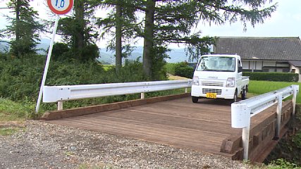 「地域の人たちによる手作りの橋が完成した」という情報をいただき、取材に伺いました。完成したのは、上郷町暮坪地区の和野橋です。赤沢川の上を通る和野橋は、老朽化によりしばらく通行止めとなっていましたが、地域の人たちの行き来の不便や大きな地震などが起きた時一次避難場所となる公民館に向かいやすいようにと整備されることになりました。作業日となった先月27日、地域に住む専門知識を持った人などおよそ20人が集まり、土台となる鉄骨の安全確認や木材の組み立て作業を行いました。そして、この日1日で地域の人たちによる手作りの新たな和野橋が完成しました。遠野産の唐松を使った和野橋は、幅4m、長さ8mで、1トン未満であれば通行可能ということです。地域の人たちの思いが込められた手作りの和野橋が地域の絆をさらに深める役割を担うことが期待されます。