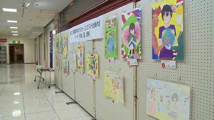 とぴあ庁舎の市民課前では、きのう(25日・木曜日)から、国際平和ポスターコンテストの出展作品が展示されています。この国際平和ポスターコンテストは、世界の若い世代に国際平和への思いを絵画にして表してもらおうと、ライオンズクラブ国際協会が開いていて、ことしで27回目となります。ことしは、「平和・愛・理解」をテーマに作品の募集が行われ、遠野ライオンズクラブには、市内の中学校から合わせて13点の作品が寄せられました。作品の中には、地球や世界中の国旗が描かれた作品のほか、世界の人たちが笑顔で手をつなぎ平和を願っている作品もありました。また、作品を見に訪れた市民にテーマにふさわしい作品を選んでもらおうと応募箱も設置されています。なお、市民からの応募と遠野ライオンズクラブの審査で上位となった3作品は、岩手地区のコンテストに出展されるということです。この展示は、とぴあ庁舎市民課前で来月3日(金曜日)まで開かれています。