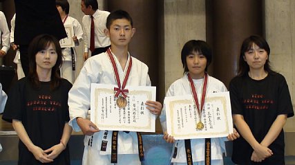 先月27日に、東京武道館で開催された第52回全国防具付空手道選手権大会で綾織小学校6年の長山美空さんが見事優勝を果たしました。また、同じく中学生男子の部に出場した遠野中学校3年の菊池弥寛くんが第3位という成績を収めました。全国から選抜された精鋭が集まるこの大会は、小学生から一般までが「組み手」と「形」の競技に分かれ日頃鍛えた技を競い合います。遠野市からは、岩手県の代表として3人が出場しました。美空さんは、組手競技小学6年生女子の部の個人戦に出場し、順当に勝ち進むと迎えた決勝も豪快な突きで相手選手を打ち負かし見事優勝を勝ち取りました。一方、組手競技中学生男子の部個人戦に出場した、菊池弥寛くんは、準決勝で宮城県の選手を相手に善戦しますがあと一歩及ばず、決勝進出は逃し、第3位の成績を収めました。先週、スポーツ少年団が練習場所に使っている綾織地区センターに伺うと、多くの子ども達と一緒に汗を流す美空さん弥寛くんの姿がありました。今は今月26日に開催される岩手県スポーツ少年団空手道選手権大会に向け日々稽古に励んでいます。美空さんや弥寛君のすばらしい活躍に、それに続けと、遠野の空手キッズ達の今後の活躍も期待できそうです。