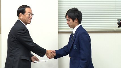 緑峰高校草花研究班が先週17日(金曜日)、とぴあ庁舎を訪れ、震災復興の支援にとホップ和紙のしおりを販売して得た益金全額を遠野市に寄付しました。この日、とぴあ庁舎を訪れたのは、緑峰高校生産技術科草花研究班の3年生8人です。草花研究班は、地域の産業振興と活性化につながればと、ホップ和紙を開発し、その和紙で押し花を活用したしおりを商品化しました。そして、風の丘や、あえりあ遠野でしおりを販売して得た益金の全額1万6700円を震災復興のための資金として役立ててほしいと、草花研究班の新田和也班長から本田市長に手渡されました。寄付金を受け取った本田市長は、「皆さんの気持ちをしっかり受け止め、使わせていただきます」と話し感謝の気持ちを伝えました。草花研究班では、今後も、和紙を使った商品を販売して得た益金を震災復興に役立つよう寄付を続けていきたいと話しています。緑峰高校草花研究班が取り組む、ホップを使った和紙作りの研究は、日本学校農業クラブ東北連盟大会で最優秀賞を受賞し、あさって22日(水曜日)には、沖縄県名護市で開かれる全国大会に臨み、研究の成果を発表します。全国大会に臨む生徒たちに本田市長は、「東北の代表として堂々と発表して緑峰高校の力を全国に示してきてほしい」と激励の言葉を送りました。