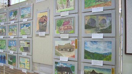 さて、ここで市内の小中学生たちが描いた素晴らしい作品をご覧いただきましょう。市民センターホワイエでは現在、「絵で伝えよう!わたしの町のたからもの」絵画展が開催されています。会場には、いつまでも残しておきたい遠野の自然や伝統、文化を表現する市内の小中学生の作品200点以上が展示されています。作品を見てみますと、「昔から伝わる馬搬は遠野の宝」という気持ちを込めて描いた絵やシルエットとして描いた遠野三山の娘など児童生徒の力作が並んでいます。この絵画展は、来週30日(日曜日)まで市民センターホワイエで開催されています。