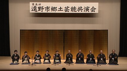 市内の郷土芸能団体が出演する遠野市郷土芸能共演会が先月30日(日曜日)にみやもりホールで開かれました。郷土芸能共演会は、発表の場を増やして郷土芸能の伝承と後継者の育成を目指そうと遠野市郷土芸能協議会が開きました。ことしは5回目の節目を迎え、小友町の氷口地区に伝わる祝い唄、「氷口御祝」で幕が開きました。現在、市内では、64の郷土芸能団体が活動を行っており、遠野市郷土芸能協議会を組織しています。この日は、8団体が出演して演目を披露しました。このうち地域の有志によって復活した中斎百姓踊りは、大正から昭和中頃までの米づくりの作業風景を踊るもので、足を跳ね上げて体を左右に振る踊りが特徴です。演目の終わりにはもちまきのお楽しみもあり、互いに助け合って農作業に励んだ頃の様子を表していました。第5回遠野市郷土芸能共演会の模様は、来年1月3日と4日、ご覧の遠野テレビデジタル11チャンネルで放送する予定となっています。