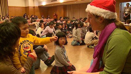 幼児から小学生に英語に親しんでもらおうと行われてきた「キッズワールドクラブ」のクリスマスパーティーが、今週日曜日(7日)に開かれました。「キッズワールドクラブ」は、本格的に英語を学習する前の段階で楽しく英語に触れることで英語に対する抵抗感をなくし、外国人講師との交流を通じて異文化を理解する心を育むことを目的に、遠野市教育文化振興財団が6月から12月までの期間で毎月一回開いてきました。今年度最後の教室となったこの日は、教室に通う子どもたちと保護者およそ100人が集まり、クリスマスパーティーを開きました。パーティーでは、歌を歌ったほか、外国人の先生から各国のクリスマスについての紹介がありました。また伝言ゲームでは、グループに分かれて縦に並び、先生から伝えられたクリスマスの衣装に関する単語を自分の後ろの子に伝え、最後の子が聞いたものを先生に着せるという内容で大いに盛り上がっていました。子どもたちは英語を使いながら一足早いクリスマスを楽しんでいる様子でした。なお、キッズワールドクラブは来年も予定されているということです。