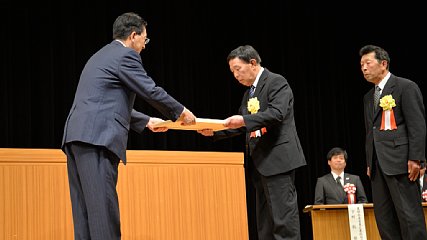 土淵町山口地区の土淵第四区地域活動組織が今月11日(木曜日)に岩手県農地・水環境保全向上活動モデル賞を受賞しました。その話題が届きましたので、お伝えします。県の農地・水環境保全向上活動は、地域共同の力で農地などの地域資源と農村環境を保全管理する取り組みで平成19年度から行われています。土淵第四区地域活動組織は、大学の学生と現地検討会を開き外部の視点を取り入れ、農村景観に配慮した農地や水路の整備などに取り組んでいることなどが評価され、このたびの受賞となりました。表彰式では、モデル賞を受賞した4つ団体を代表して土淵町第四区地域活動組織の田尻壽樹代表が、達増拓也知事から表彰状を受け取りました。なお、土淵町第四区地域活動組織では、景観保全の活動を子ども会などと連携して進めており、地域の景観を次の世代に伝承する活動にも力を入れているということです。