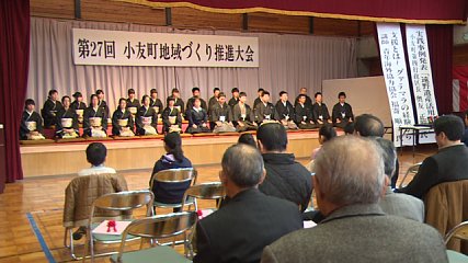 小友町地域づくり推進大会が先週(10日)土曜日、小友地区センターで開かれ、技名人の認定や地域づくりに功労のあった人などが表彰されました。ことしも遠野西中学校の小友地区の生徒による「氷口御祝」で始まったこの推進大会は、小友町の歴史や風土、郷土芸能、伝統行事の保存・継承など、市民協働の地域づくりの推進を図ることを目的に、小友町地域づくり連絡協議会が開きました。大会ではまず、平成26年度の技名人に認定された装蹄師の菊池政光さんに小友町地域づくり連絡協議会の菊池勉会長から認定証が手渡されました。小友技名人の認定者数は、菊池政光さんが57人目となります。また、地域づくりに尽力したとして松田政雄さんなど3人と、芸術や文化、スポーツの分野で児童生徒10の個人と3団体が地域づくり功労者として表彰されました。この後、小友町地域づくり連絡協議会の菊池勉会長があいさつしました。実践事例発表では、小友町第4区自治会の奥友正範自治会長が、平成19年7月に遠野遺産第1号の認定を受けた遠野七観音のひとつ、山谷観音の保護・活用を目的とした活動について発表しました。発表で奥友自治会長は、山谷観音に13ある石碑群を移設した話しのほか、劣化した鳥居を遠野市の「みんなで築く遠野ふるさと推進事業」を活用して去年、のべ60人以上の地域の人たちで修繕作業を行い、見事な鳥居を完成させるまでの取り組みについて発表しました。さらにこの日は、青年海外協力協会の遠野事務所で平成24年から活動している福寄順子さんが基調講演をしました。福寄さんは、自身が青年海外協力隊員として中米の国、グァテマラ共和国で有機野菜栽培の指導にあった2年間の苦悩と、その苦悩から救ってくれるきっかけを作ってくれたホストファミリーとの出会いなどについて話しました。そして、自身の経験を振り返りながら「支援とは、お互いがお互いを支え合うことだと感じた」と締めくくっていました。小友町地域づくり連絡協議会では、ことしも町民一丸となった活動を展開していくことを確認し合っていました。