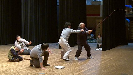 来月、40回目の公演を迎える市民の舞台「遠野物語ファンタジー」の舞台総見が先週(23日・金曜日)市民センターで行われました。今回のファンタジーは、土淵町のデンデラ野を舞台に、江戸時代、家族と離れ共同生活していた老人たちが生き抜こうとする姿と人間愛を描く「でんでらぱらだいす」となっています。先週金曜日の舞台総見は、舞台監督や大道具などのスタッフが芝居を通しで見てキャストの状態を確認し、舞台の作り方を考え、修正を行うなど本番に備えるために行われました。キャストたちは、立ち位置や動きを確認しながら、緊張した様子で2幕10場を通しで演じました。また、スタッフたちは、ステージ上のキャストの動きを確認し、本番まで1カ月を切った舞台を最高のものに仕上げようと気持ちを高めていました。第40回遠野物語ファンタジー「でんでらぱらだいす」は、2月21日(土)と22日(日)に市民センター大ホールで公演されることになっています。なお、プレイガイドは、市民センターや各地区センターなどとなっています。問い合わせは、遠野物語ファンタジー事務所までお願いします。