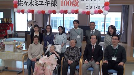 土淵町出身の佐々木ミユキさんがきのう(8日・日曜日)、100歳を迎え、お祝い会が開かれました。その様子が届きましたのでお伝えします。佐々木さんは、大正4年2月8日に土淵町で生まれ、22歳の時、同じ土淵町の佐々木銑太郎さんと結婚し、子どもを1人育てました。現在、佐々木さんは、松崎町にある遠野長寿の郷で生活をしていて、きのうのお祝い会は、家族や施設の職員が開きました。また、きのうは、本田市長もお祝い会を訪れ、佐々木さんは、たくさんの人からのお祝いにうれしそうな表情を見せていたということです。なお、市内の100歳以上の人は、佐々木さんを含めて19人ということです。