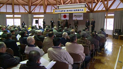 遠野地方森林組合の第33回通常総代会が、きのう(26日・木曜日)、青笹町の森林総合センターで開かれました。きのうの総代会には、3000人以上いる組合員から選ばれた総代200人のうち、本人出席135人、書面議決出席18人の、あわせて153人が出席しました。初めに、遠野地方森林組合の濱田平八郎代表理事組合長が「地域と一体となり工夫しながら木材の安定供給をすすめ、伐採跡地への植林も実施していきたい」とあいさつしました。続いて、長年、遠野地方森林組合の運営に尽力した人や、林産事業や販売事業において業績が優秀だった人など4人に、表彰状が贈呈されました。その後議事に入り、事務局から平成26年度の事業報告が行われました。このうち森林整備事業としては、高性能林業機械を導入したことや、近年問題となっている森林の病害虫防除事業として松くい虫対策などに取り組んだことなどが報告されました。このほか、販売部門など、各種の活動に取り組んだ結果、平成26年度の事業総利益は、前年度よりおよそ1000万円多いおよそ8153万円となりました。また当期剰余金は、前年度よりおよそ600万円多いおよそ857万円を計上する結果となりました。続いて、平成27年度事業計画として、26年度に導入した高性能林業機械を活用して低コスト間伐を進め、林業経営の安定化をめざすことなどが提案されました。出席した総代からは「森林整備を行う作業員が不足していると思うので若手の育成や人材確保に力を入れてもらいたい」などの意見が出されました。決議の結果、議案はすべて原案通り承認され総代会は終了しました。