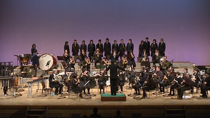 市内の高校の吹奏楽部と音楽部、それに市民バンドが一緒になって開く「春のジョイントコンサート」が今週(15日・日曜日)、市民センターで開催されました。春のジョイントコンサートは、音楽を通じて世代間の交流を深めるとともに高校生のレベルアップにつなげようと開かれました。この日のコンサートは、行進曲でおなじみのワシントン・ポストから始まり、ソロ演奏や合唱を交えながら全部で13曲が披露されました。遠野高校と緑峰高校、それに市民バンドのメンバーは、遠野物語ファンタジーのミュージックアンサンブルとして一緒に演奏していて、春のジョイントコンサートは、ことしで3回目です。現在、遠野高校の吹奏楽部は8人、音楽部・13人、緑峰高校の吹奏楽部・7人と普段は小編成での演奏が多いといいます。この日は、遠野高校吹奏楽部前顧問の岩渕公夫さんを指揮に迎え、総勢60人を超える編成での演奏は、高校生たちにとって刺激になっていました。主催した遠野市民バンドニュー・リーバティーズは、「市内高校吹奏楽部の部員数が増えるのはもちろんのこと、仲間を増やしながらコンサートの質も高めていきたい」と次の開催にも意欲を示していました。春のジョイントコンサートの様子は、来月18日・土曜日から遠野テレビで放送する予定です。