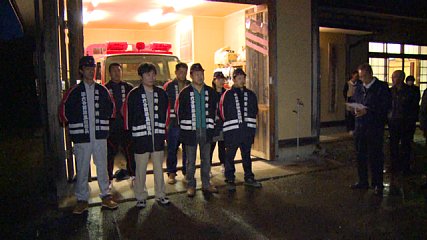 土淵町で地域の人たちに防火を呼び掛ける夜回りの活動が今年度も始まり、今週日曜日(5日)、出発式が行われました。この夜回りは、かつて土淵町第2区で火災が多く発生したことを受け、地域の人たちに火の取り扱いに気をつけてもらおうと、昭和56年に土淵町第2区の自治会が始めました。その後、平成2年からは1区と3区が夜回りに加わり、今では3つの区が合同で実施しています。出発式には、遠野市消防団第六分団本部や遠野市婦人消防協力隊第六分隊などからおよそ40人が出席しました。式では土淵町第2区の一ノ渡壽男区長が「空気が乾燥すると火災が起こる可能性が高まるので地域のみなさんへの注意喚起をお願いします」とあいさつしました。このあと消防車がコミュニティセンターを出発し、地域の人たちに防火を呼び掛けました。今年度は、今月から11月まで、月に2回、夜回りの活動を行う予定ということです。なお、遠野消防署によりますと、去年1年間、市内で起きた火災は12件で、このうち7件が建物火災だったということです。また、ことしに入ってからきのう、7日(火曜日)現在、すでに6件の建物火災が発生していることから消防では火の取り扱いには十分気をつけるよう注意を呼び掛けています。