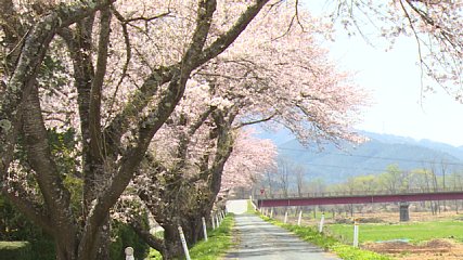 遠野にも桜のシーズンがやってきました。きょうは、遠野遺産に認定されている宮守町内の桜をご覧いただきます。宮守町上鱒沢の猿ヶ石川沿いにある桜並木です。遠野遺産公式ガイドブックによりますと昭和23年のアイオン台風による猿ヶ石川流域の水害後堤防が築造され、その完成を記念しソメイヨシノの苗木が植えられたということです。そして地域では、40年以上前から桜の手入れが行われているということです。ご覧いただいている桜は、きょう、お昼ごろの映像です。全体的に見ると天気がよければあと数日で満開といった様子でしたが、場所によってはきれいに咲いている所もありました。