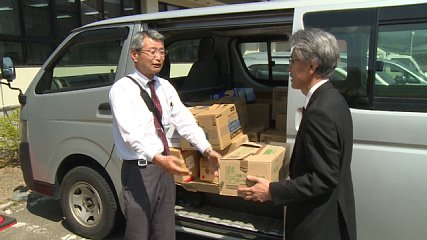 新潟県阿賀野市の企業が遠野市が行う後方支援に役立ててほしいと先週8日・金曜日、洗剤や石けんなどの日用品を遠野市社会福祉協議会に寄付しました。社会福祉協議会を訪れたのは、阿賀野市で遊園地を経営するサントピアワールドの橋修常務取締役です。サントピアワールドでは、遊園地を無料開放し、入場料の代わりに被災地へ送る日用品を募ったそうで、個数にしておよそ1500個の洗剤や石けんなどの日用品がこの日、社会福祉協議会に届けられました。社会福祉協議会では、寄付された日用品を穀町のサポートセンターに置き、毎月25日のお便り配布に合わせて市内に住む被災者世帯に届けるということです。