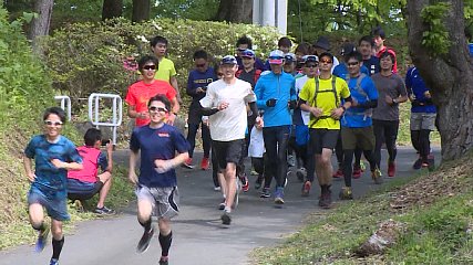 登山道や林道などを走るアウトドアスポーツ、トレイルランニングの大会が10日日曜日に開催され、各地から集まったランナーたちが遠野の自然を満喫しました。「トレイルランニング」とは舗装されていない主に山などの自然の中を走るアウトドアスポーツで、近年は人気のスポーツとして幅広い世代に広がりをみせています。今回、八幡平市を中心に活動している七時雨マウンテントレイルフェス実行委員会の協力を得て遠野では初めてのトレイルランニングのレースが綾織スポーツクラブ主催で開催されました。集合場所となった鍋倉公園には県内外からおよそ40人のランナーが集まり、走るコースや注意点について説明があったあといよいよトレイルランニングのスタートです。今回は林道を中心とした初心者向けのコースですが、鍋倉公園から物見山方面へ向かう往復およそ12キロ、高低差200メートル以上にもなります。参加者は自然のコースの中をマラソンのように走ったり、時には登山のように斜面を登ったりと、それぞれのペースで遠野の自然を楽しんでいました。レースが終わると全員にジンギスカンが振る舞われ、遠野の名物を囲みながら参加者同士の交流を深めていました。主催した綾織スポーツクラブでは次回、秋頃の開催を検討しているそうで、初心者でも楽しめるトレイルランニングの魅力を広めていきたいとしています。