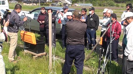 先週8日(金曜日)に土淵町で開かれた電気牧柵設置指導講習会についてお伝えします。この講習会は、増加するニホンジカ被害対策の一環として効果を上げている電気牧柵の設置についてより多くの市民に理解を深めてもらおうと遠野市が開きました。この日は、電気柵などを扱う専門業者が講師を務め、電気柵の基本性能や種類設置方法などについて説明しました。この中で、電気牧柵の効果については、常に電気を流しておくことや設置する時期は、収穫期よりも早い時期など見る・触る・痛い・そして怖いという心理を働かせることの大切さを話していました。この後、昨年度に国の補助事業を活用して冬も通電可能な電気牧柵の一つ恒久柵を設置した土淵町栃内地区で具体的な設置方法について説明がありました。講習会に参加した人たちは、恒久柵の安全性や効果、補助事業の活用方法などについて質問し、今後の対策に向け理解を深めた様子でした。市によりますと、市内の恒久柵は、平成23年度の設置開始から累計で総延長50kmになっており、今年度も17kmの設置が予定されているということです。既に設置している地区では、恒久柵によりニホンジカの被害が減少している所もあるということです。公表されている平成25年度で見てみると遠野市内のニホンジカによる農作物の被害は、およそ1億6000万円と県内で最も被害額が多く、市では、今後もこの恒久柵の普及に努めていきたいとしています。恒久柵についての問い合わせは、市農業振興課までお願いします。