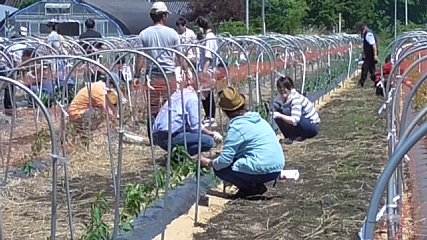 新たな農業ビジネスの創出や被災地域の復興と活性化を目指す東北復興・農業トレーニングセンタープロジェクトの現地視察が先週土曜日から2日間遠野市などで開かれました。今回行われた現地視察には、首都圏などから参加した受講者80人が地域の活性化を目指す農家の取り組みを見学しました。このプロジェクトは、大手飲料メーカーのキリンビールが、農業の担い手の育成支援とともに新たな農業ビジネスを生み出し被災地の復興を目指そうと行っています。この日、受講者たちは、ホップ生産が盛んな遠野をさらに盛り上げようとビールのつまみに合うスペイン原産の野菜パドロンの栽培に取り組む青笹町の遠野アサヒ農園を視察しました。受講者たちは、日本で先駆けてパドロン栽培をはじめたアサヒ農園代表の吉田敦史さんから、取り組み状況や今後の展望を聞いたほか、実際にパドロンの苗植えも体験しました。さらに、アサヒ農園がことしから生産を始めたホップ農園も訪れ、ホップを活用した「ビールツーリズム」の新たな取り組みについても説明を受けていました。現地視察をした受講者たちは「遠野の自然やホップ畑に感激しました」「ホップ畑でキリンビールと遠野の食材を満喫できて最高」と感想を話していました。なお、今回参加した受講者は、8月に行われるホップの収穫作業にも訪れる予定だということです。