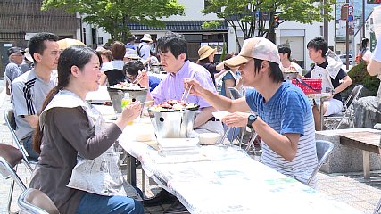遠野のソウルフード「ジンギスカン」を遠野スタイルで楽しむバケツでジンギスカン大会が、おととい、(21日、日曜日)遠野駅前の広場で開かれ、大勢の人たちでにぎわいました。バケツでジンギスカンは、穴の開いたブリキのバケツに燃料を入れ、鍋をのせてジンギスカンを焼く遠野独特の食文化です。この食文化を大勢の人たちに知ってもらい、そして、楽しんでもらおうと市民有志で作る遠野ジンギスカン推進委員会がイベントを開催しことしで3回目になりました。この日は、朝から天気に恵まれ、バケツでジンギスカンをするのにぴったりのジンギスカン日和となりました。早い人では、1時間以上前から並んだ人もいるほどの人気ぶりで用意した280食分のジンギスカンは、昼前に完売していました。訪れた人たちは、外で友人や家族とわいわい囲むバケツでジンギスカンの醍醐味を堪能していました。