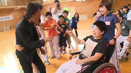 附馬牛小学校では、きのう(22日・月曜日)、恒例となった遠野コロニーとの交流会が開かれ、児童と利用者が一緒にゲームなどで楽しいひとときを過ごしました。この交流会は、社会福祉への理解と関心を深め、児童たちに思いやりの心を育んでもらおうと毎年、開かれていて、ことしで35年目を迎えます。今回は、附馬牛小学校の3、4年生12人と遠野コロニーの利用者8人が参加し、初めに、児童たちが国体ダンスを披露して利用者を歓迎しました。交流会では、それぞれが自己紹介したあとじゃんけん列車ゲームや室内で行うニュースポーツラダーゲッターなどで一緒に楽しい時間を過ごしていました。最後には、児童たちから感謝の気持ちが込められた手づくりのメダルが贈られ、交流会を締めくくりました。なお、今度は秋に附馬牛小学校の児童たちが遠野コロニーに出向き、さらに交流を深めるということです。