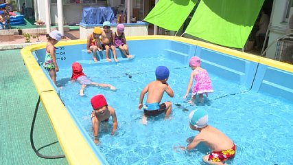 きょうも、暑い一日となりましたが、こういう日の子どもたちのプール遊び、気持ち良さそうです。盛岡地方気象台によりますと、岩手県内36の観測地点で川井の35、5度をはじめ半分近い17地点でことし最高の気温になったということです。遠野もことし最高となる33、8度でした。朝から強い日差しが差す中、遠野保育園では、子どもたちがプール遊びを行い、気持ち良さそうでした。さて、遠野市気象情報によりますと、あすの市内は、さらに気温が上がり、昼過ぎには34度の予報が出ています。遠野市では、熱中症予防のためにも常に水分をそばに置き、のどが渇いたと感じる前に小まめに水分をとることなど注意を呼び掛けています。