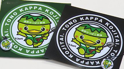 遠野かっぱ工事隊のマスコットキャラクター「スコッパ」のシールなどが完成しました。この「スコッパ」を活用して広く建設業について知ってもらおうと取り組むかっぱ工事隊を取材しました。遠野市内の建設業者で構成されるかっぱ工事隊は、3年前の3月に発足しました。建設業を身近な存在に感じてもらおうとかっぱ工事隊の隊員は、かっぱをイメージしたヘルメットや安全服を着て道路整備にあたるほか、地域へのボランティア活動に取り組んでいます。そうした中、多くの人にかっぱ工事隊を知ってもらおうと去年12月からことし1月にかけてマスコットキャラクターが募集され、スコップ片手に可愛らしいヘルメットをかぶる『スコッパ』が選ばれました。マスコットキャラクターをどのように活かすか、かっぱ工事隊の隊員たちは、意見を出し合い、シールや携帯ストラップを作りました。また、工事作業中を知らせる看板の活用についても意見を出し合っていました。かっぱ工事隊の取り組みをどのように後押ししていくのか、『スコッパ』の今後の活躍が期待されます。なお、できあがった『スコッパ』のシールやストラップは、建設業に少しでも興味を持ってもらえるように遠野市内で行われる親子で参加する行事などでプレゼントしながらかっぱ工事隊をPRしていくということです。