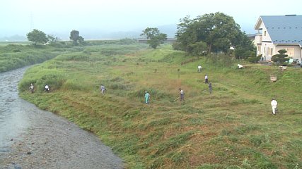 市内では、きのう(2日・日曜日)一斉に河川清掃が行われ、およそ6100人の市民が、朝早くから草刈りやゴミ拾いに汗を流しました。市内一斉河川清掃は、お盆を迎える前に地域が一体となって環境を整えようと、宮守町を除く市内8地区で毎年この時期に行われています。附馬牛町の猿ヶ石川河川敷では、附馬牛町2区と3区の住民およそ40人が、朝5時から草刈りをしました。集まった人たちは、土手の斜面に生い茂っている雑草を草刈り機やカマを使って手際よく刈り取っていました。なお、宮守町では6月の環境月間に合わせて一斉に河川清掃を行ったということです。
