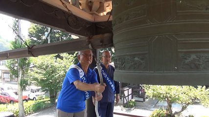 戦後70年の節目の年に、自然災害や紛争などで苦しむ世界の人たちへ向けて、「平和の鐘」を鳴らし、祈りを捧げようというイベントが今月6日(木曜日)に開かれました。その様子が届きましたのでお伝えします。このイベントは、戦後70年の節目に「平和の鐘」を鳴らし、祈りを捧げようと、遠野ユネスコ協会が開き、会員や市民などおよそ60人が集まりました。初めに、新町にある常福寺の副住職熊谷義弘さんと、遠野ユネスコ協会の西田皓悦さんが、「平和の心」などについて講話を行いました。続いて、遠野高校音楽部のメンバーによる合唱が披露されました。そのあと、参加者全員で、東日本大震災の復旧・復興や、自然災害・貧困、紛争などで苦しむ世界の人々への祈りの気持ちを込めて「平和の鐘」を鳴らしました。参加者たちは、平和のあり方について改めて考えている様子だったということです。