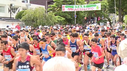 毎年恒例の日本のふるさと遠野じんぎすかんマラソンがおととい(23日・日曜日)開催されました。ことしで33回目の開催となったじんぎすかんマラソンには、遠野市内外から1417人が参加しました。初めに開会式が行われ、大会長を務める本田市長がランナーたちを激励した後、遠野中学校3年生の菅田和馬君が選手宣誓を行いました。今回は、3km・5km・10kmの3つの部門に分けられ、午前9時30分に3kmの部がスタートしました。その後、10時に5kmの部が、そして10時30分に10kmの部がスタートしました。また、ゴールした後ランナーたちは、遠野の名物ジンギスカンを食べて疲れを癒していました。なお、遠野市民からは3km小学4年生以上に参加した齋藤大君、3km中学生女子に参加した及川誌月さん、そして5km中学生男子に参加した菅田和馬君がそれぞれ1位となっています。