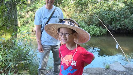 連休4日目、きょう(22日・火曜日)の市内の様子はどうだったのでしょうか。土淵町のカッパ淵には、朝からたくさんの人たちが訪れていました。秋といえば、芸術の秋とも言われますが、きょうは、カッパ淵のスケッチをしている人の姿もみられました。さて、カッパは釣れるのでしょうか。そんなとき現れた男性がかぶっていたものは。カッパの麦わら帽子です。先ほどの子どもたちも、その帽子を借りて、記念撮影をしていました。早速、カッパの帽子が借りられるという伝承園に行ってお話を伺いました。連休も、残すところあと1日となりましたが、カッパ淵を訪れた人たちは、思い思いの秋を堪能している様子でした。