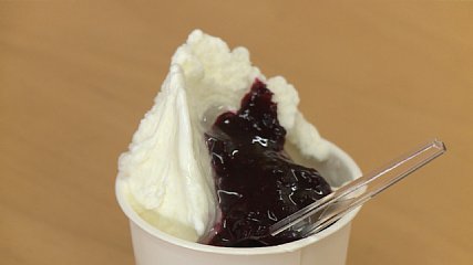 夢産直かみごうで、今週日曜日(27日)遠野中学校3年のグループが考えたジェラートが、デモ販売されました。この「ブルーベリーハニー」と名付けられたジェラートは、遠野中学校の3年が総合学習で取り組んでいる「遠野を盛り上げるプロジェクト」の一環として考案されました。遠野の名産品「ブルーベリー」をはじめ、アカシヤはちみつ・カシス・牛乳も、遠野産のものが使われています。生徒たちは、産直に訪れた人たちに自分たちで作成したチラシを配り、新作ジェラートをPRしていました。その宣伝効果もあってか、ジェラート売り場には行列が出来ていました。この日は、午後の1時からデモ販売が開始され、2時間でおよそ165個売れたということです。また、生徒たちは、買ってくれた人に味・見た目などについての感想や、今後食べたい味などについてアンケートをとり、今後どのようにしてこのジェラートを盛り上げていくかの参考にしていました。なお、夢産直かみごうでは今後、この日のデータを踏まえた上で、このジェラートを季節限定などで商品化していきたいと意欲を見せていました。