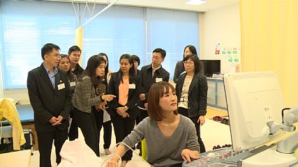 周産期医療研修としてタイ国の医師団がきのう(21日・水曜日)遠野市を訪れ、遠野市助産院「ねっと・ゆりかご」を視察しました。タイ国では、医師不足や病院が少ないこと、また、地方から大きな病院までの移動に時間がかかるなどの問題を抱えているといいます。そうした現状の中、タイ国での妊産婦の負担を軽減するため、きのうの研修は、遠野市で行っている動画伝送可能な超音波画像診断システムの視察をして、今後の参考にしようと開かれました。研修には、タイ国の医師や看護師7人が参加し、「何か特別な訓練が必要なのか」などと質問しながら、モニター越しに医師と妊婦が会話する様子を興味深く見入っていました。タイ国から、去年6月にも医療関係の大学から「ねっと・ゆりかご」を訪れ、遠隔医療システムの視察をしており、遠野の取り組みが今後、タイ国の医療環境の整備に役立てられそうです。