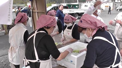 赤十字奉仕団ふれあい交流会遠野市赤十字奉仕団が24日土曜日、釜石市鵜住居町の仮設住宅団地で炊き出しを行いました。遠野市赤十字奉仕団では、毎年、震災で被災した地域で炊き出しを行っています。今年は、5月に行われたノルディックウォーキング交流会で知り合った、釜石市鵜住居町田郷地区の皆さんと食を通した交流を行いました。この日は、ひっつみと炊き込みご飯を振る舞い、仮設住宅の入居者たちと楽しいひとときを過ごしました。